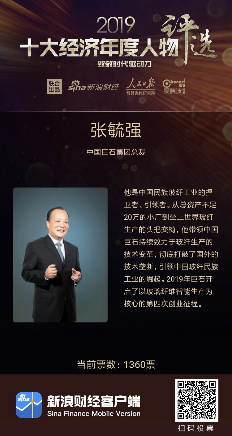 點擊下方圖片——識別圖中二維碼——下載新浪財經APP——進入“2019十大經濟年度人物評選”投票頁面——為張毓強投票