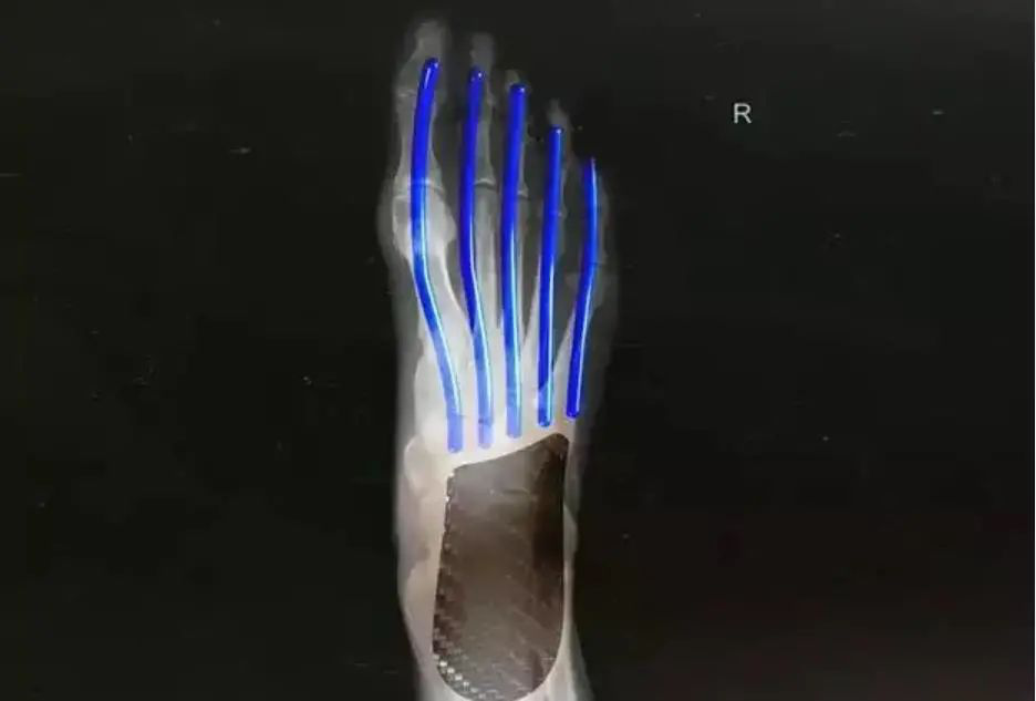 五根 EnergyRods 碳纖維支撐條,是阿迪達斯設計師根據生物力學實驗和解剖實驗結果,不斷完善原型設計,最終打造出了一種符合精英運動員跖骨特征的跑鞋結構。